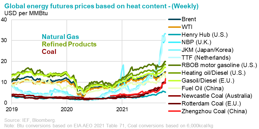 In the short-term, high natural gas prices encourage fuel switching – not energy transitioning, hindering progress towards energy access and climate goals. Developing nations unable to afford the high price of imported natural gas will resort to more carbon intensive alternatives for heat and electricity generation such as fuel oil and coal. Prices for both fuel oil and coal in Asian markets have risen as many countries seek to secure supplies ahead of winter.